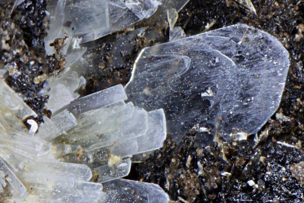 ncat JP2198 Kladnoite, Kladno Mine, Libusin, Kladno, Central Bohemia Region, Czech Republic January 10, 2022 Pendleton Czech Republic Europe Type Locality Colourless flat bladed crystals. Type Locality. Ex Jo Price Collection. Width of view 2.5mm. Stack of 52 images. Click on the image below for a higher resolution version.