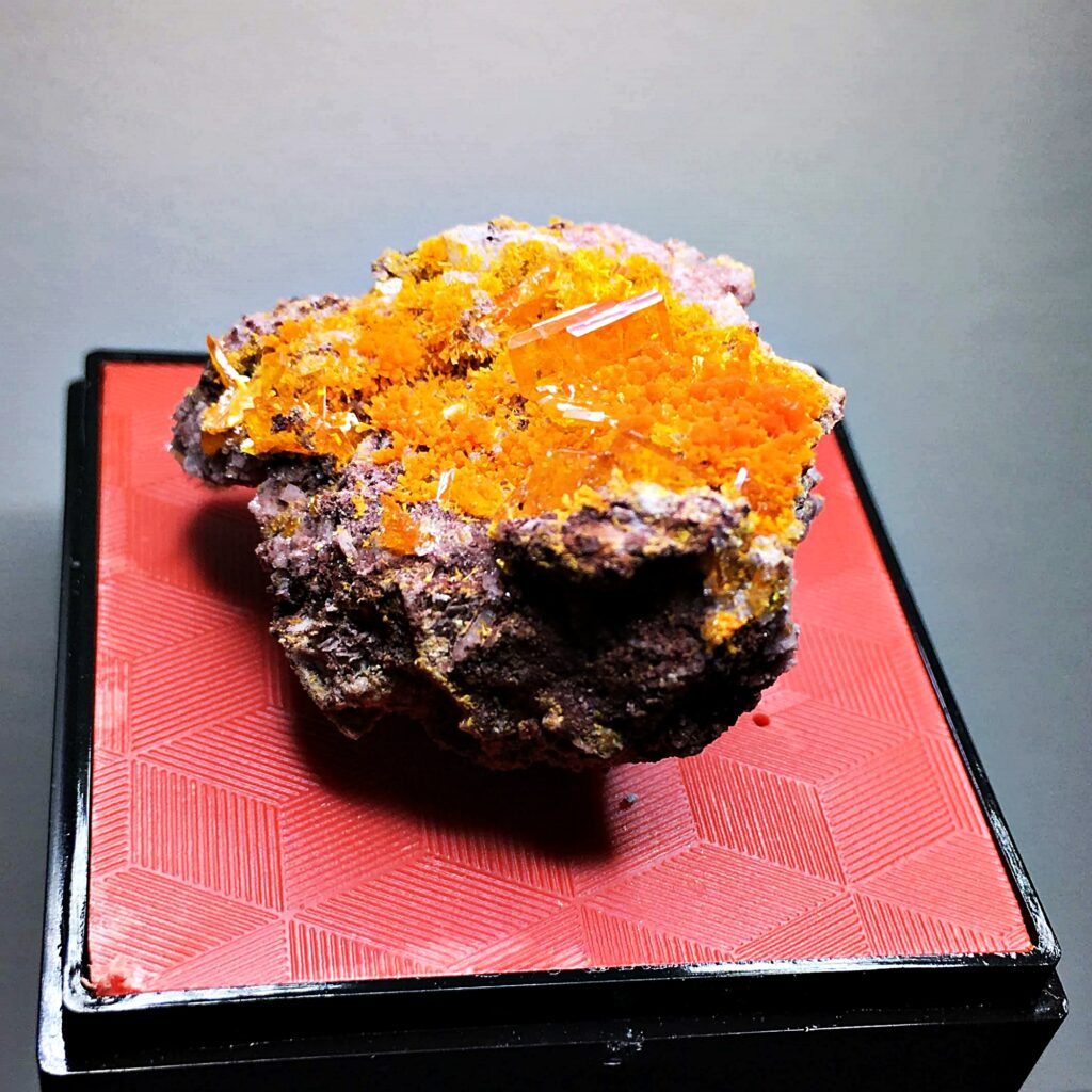20029 Wulfenite, Mimetite, Rowley Mine, Theba, Painted Rock District, Painted Rock Mts, Maricopa Co., Arizona, USA October 20, 2019 Pendleton Arizona North and Central Americas United States Bright orange mimetite surrounds glassy orange wulfenite crystals. Click for full sized imageā¦