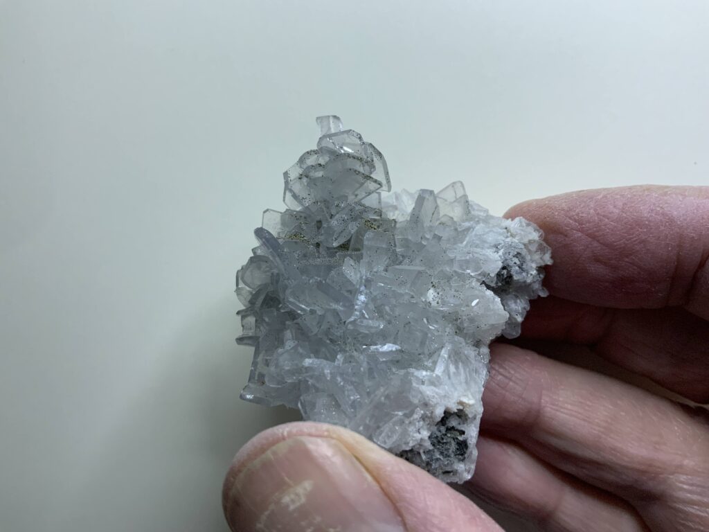 30067 Barite, Pyrite, Fluorite, Calcite, Level 4, El Solar Mine, Taxco de Alarcón, Mun. de Taxco, Guerrero, Mexico April 21, 2020 Pendleton Mexico North and Central Americas Fluorite is white, only picked up under longwave UV. Tiny scalenohedral calcite crystals. Ex Barry Johnson Collection. Video best viewed full screen.