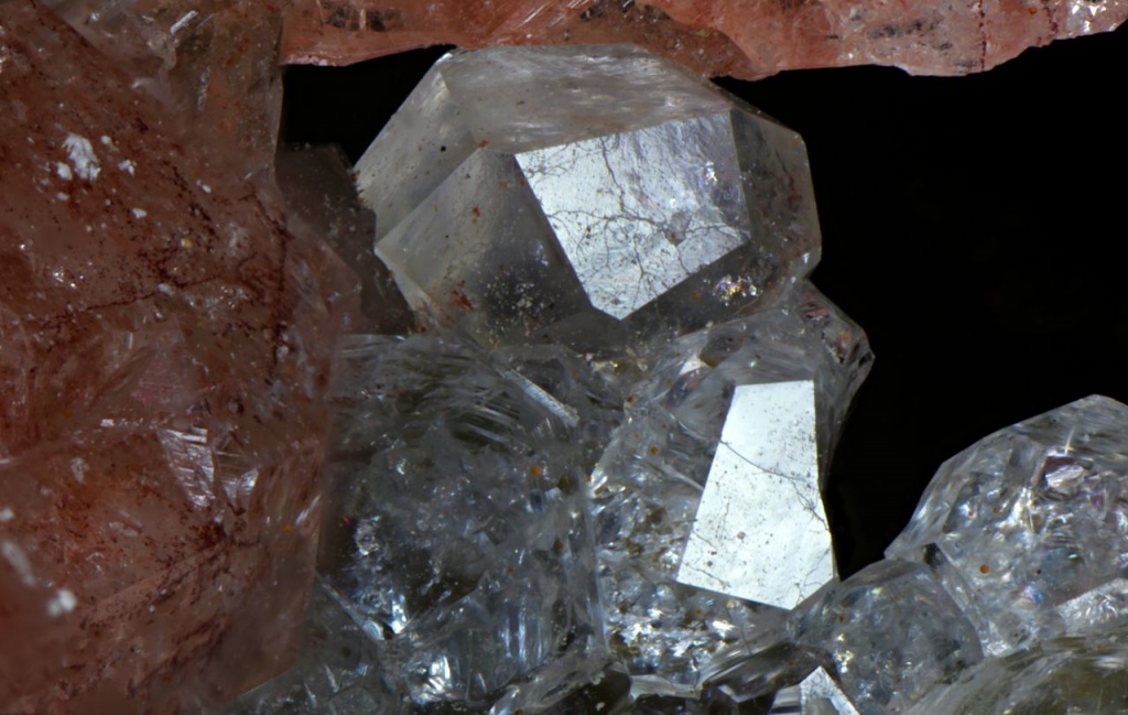 ncat 442 VHD11, Analcime, Gmelinite-Na, Simmons Bay, Flinders, Victoria March 22, 2021 Pendleton Australasia Australia Victoria Red gmelinite with colourless analcime crystals. Width of view 3.5mm. Stack of 70 images. Click on the image below for a higher resolution version.