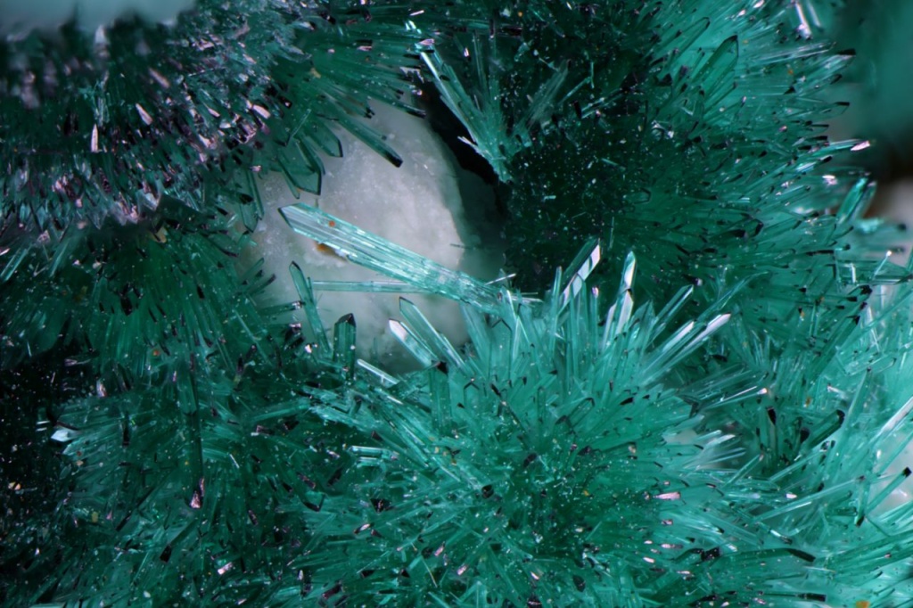 ncat BDMAR01 M1543 Brochantite, Blockade Mine, Mount Isa District, Queensland October 31, 2021 Pendleton Australasia Australia Queensland Bluish-green radiating groups of bladed brochantite crystals. Width of view 3.5mm. Stack of 73 images. Ex Bernie Day Collection. Click on the image below for a higher resolution version.