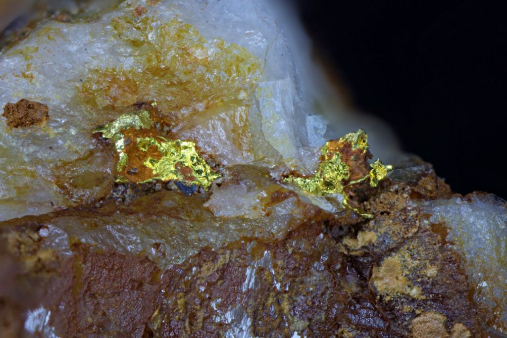 0885 Gold, Placerville (Hangtown), Placerville Mining District, Mother Lode Belt, El Dorado Co., California, USA December 13, 2021 Pendleton California North and Central Americas United States Hackly gold in a quartz vein. Ex John Sobolewski. Width of view 5mm. Stack of 50 images. Click on the image below for a higher resolution version.