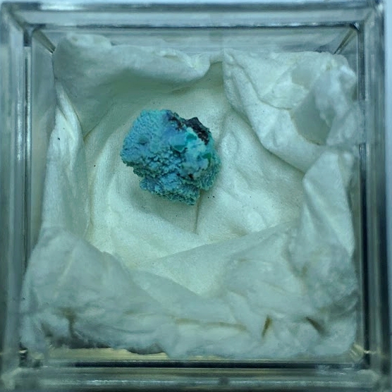0004 Chrysocolla, Boleite, Pseudoboleite, Santa Rosalia (El Boleo), Boleo District, Mun. de Mulege, Baja California Sur (BC Sur), Mexico September 18, 2019 Pendleton Mexico North and Central Americas Pseudomorph of chrysocolla after boleite and pseudoboleite. From near to the Amelia Mine. Too fragile to mount so nestled in tissue. Click for full sized imageā¦