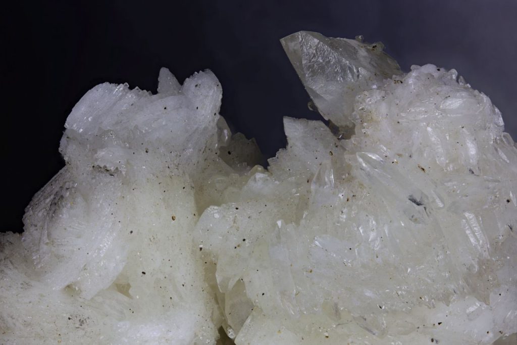 Labelled as barytocalcite (not listed in Mindat), but could be barite. Colourless to white crystal aggregates. Width of view 6mm. Stack og 86 images.