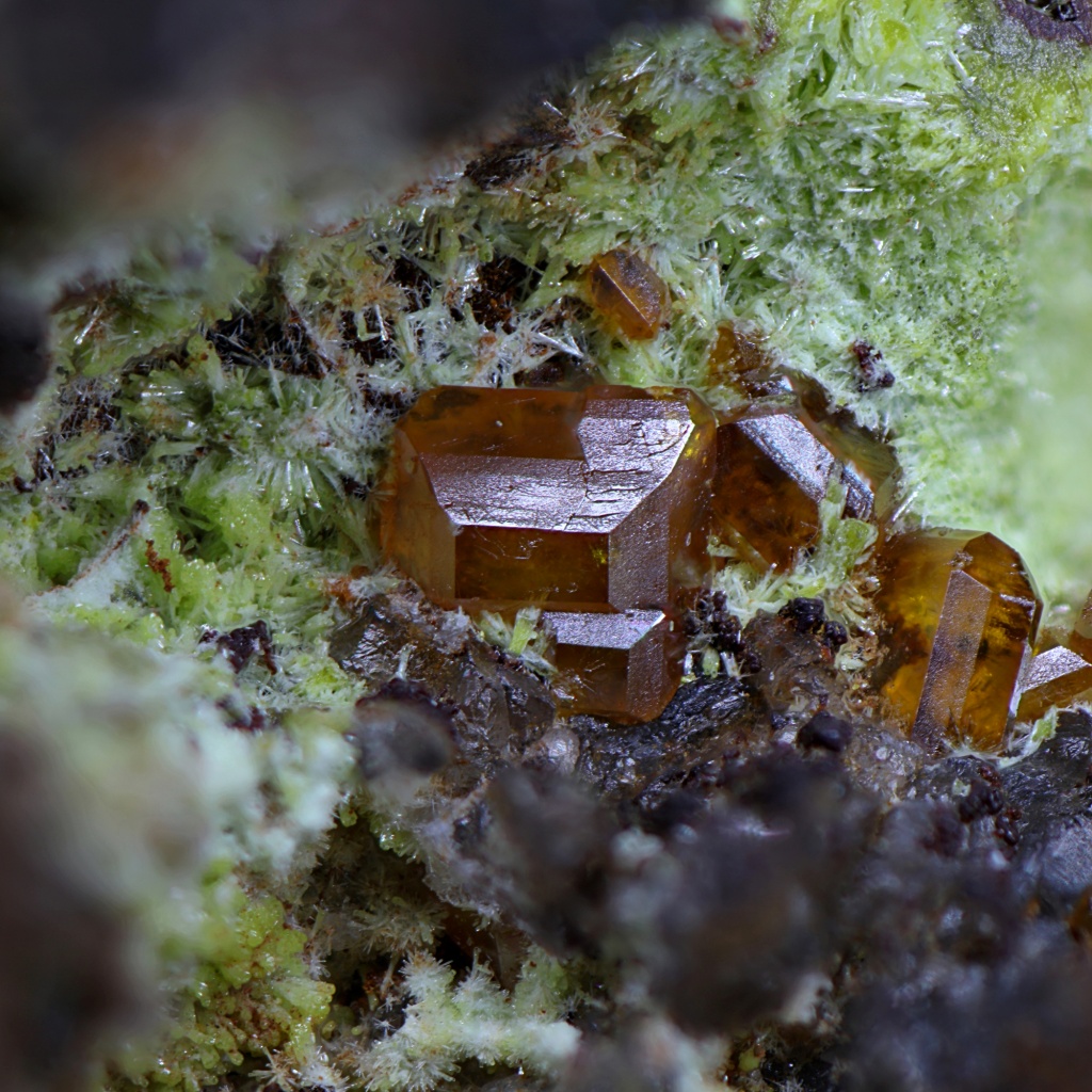 5561 Stolzite, Pyromorphite, Broken Hill, Yancowinna Co., New South Wales, Australia March 25, 2018 Pendleton Australasia Australia New South Wales Ex Bill Henderson Collection. Labelled as mimetite, but more likely to be pyromorphite. Photo width 3.05mm. Click for full sized imageā¦