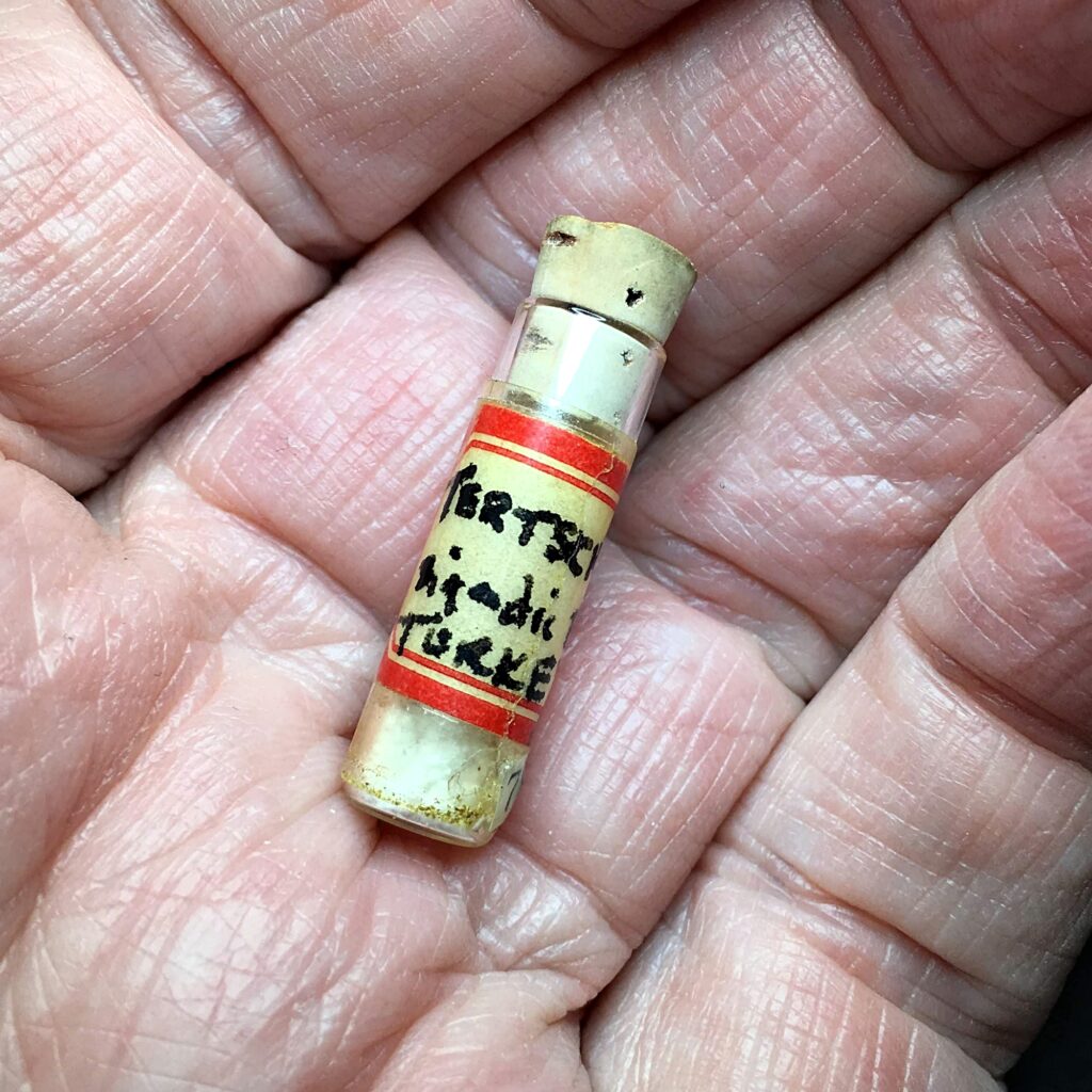 20004 Tertschite, Kurtpinari mine, Faraskoy (Faras), Bigadic, Balikesir Province, Marmara Region, Turkey October 20, 2019 Pendleton Europe Turkey Type Locality Type Locality. Tiny white fibres in a vial. Ex R. C. Erd, 1961. Click for full sized imageā¦