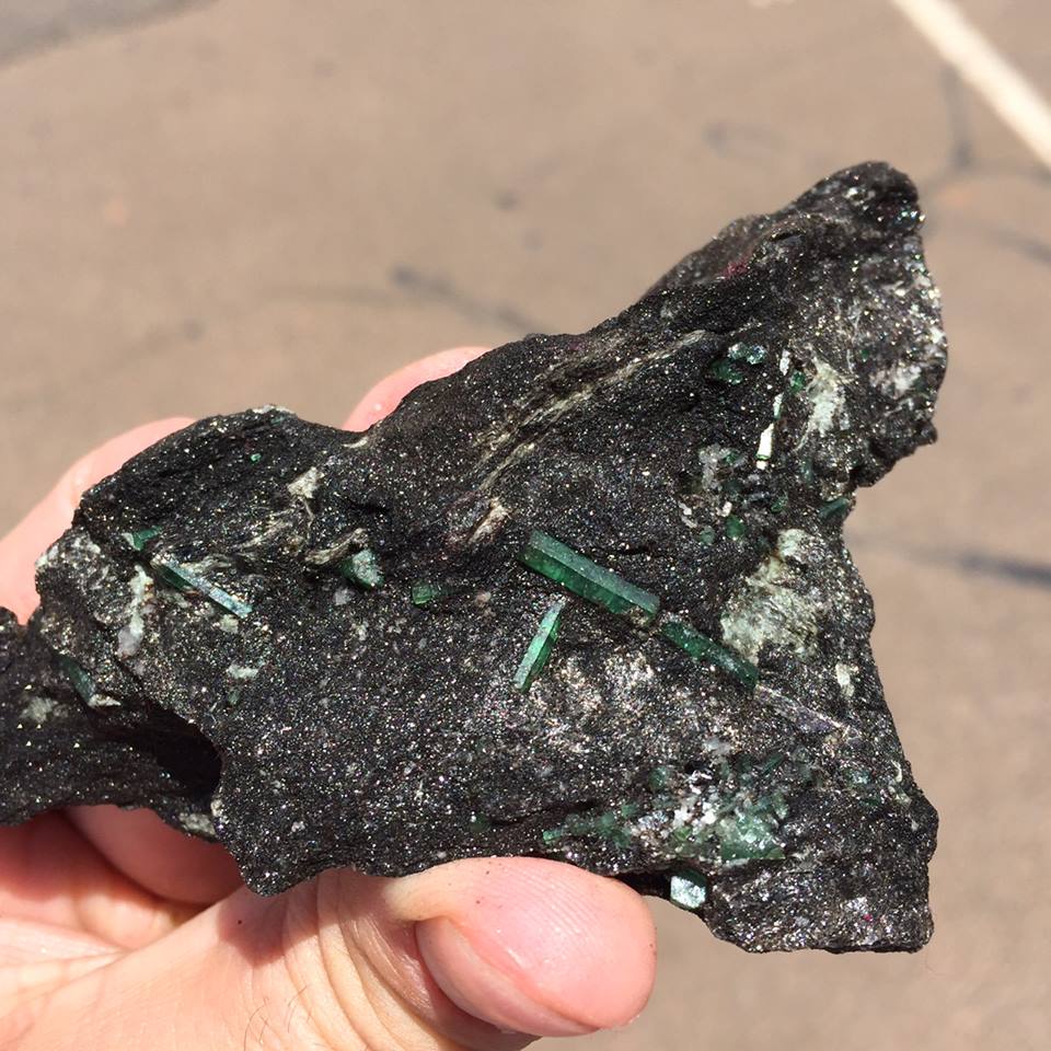 Eight magnificent micro synthetic emerald cyrstals of 1 to 2 mm are mounted on a round white apparently plastic disk that’s affixed to a round cork pedestal. The pedestal extends from the bottom of a vintage cardboard micromount display case as was favoured in the first half of the 20th...